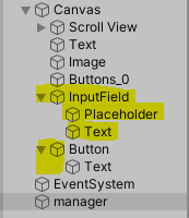 실행했을 때, input field에 넣는 텍스트는 아래 Text 오브젝트에 입력된다.