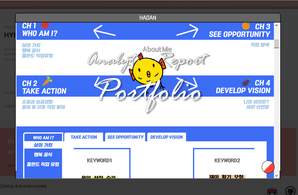 직업심리학 수업에서 만든건데 나의 성향을 분석하고 진로와 꿈에 가치관이 잘 담겨있어서 조금 수정한 후에 넣었다.
