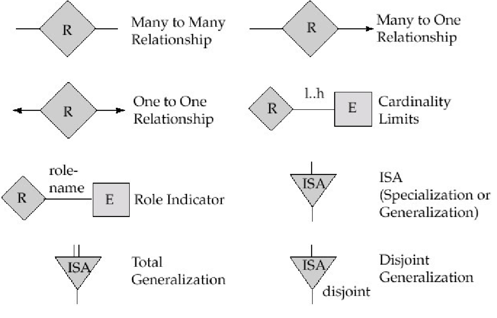 - 분리(disjoint): 하나의 객체는 반드시 하나의 하위 개체 집합에만 속할 수있다. ISA 삼각형 옆에 'disjoint'라고 표기함으로써 표현되며 반드시 특수화/일반화에 명시되어야 한다.